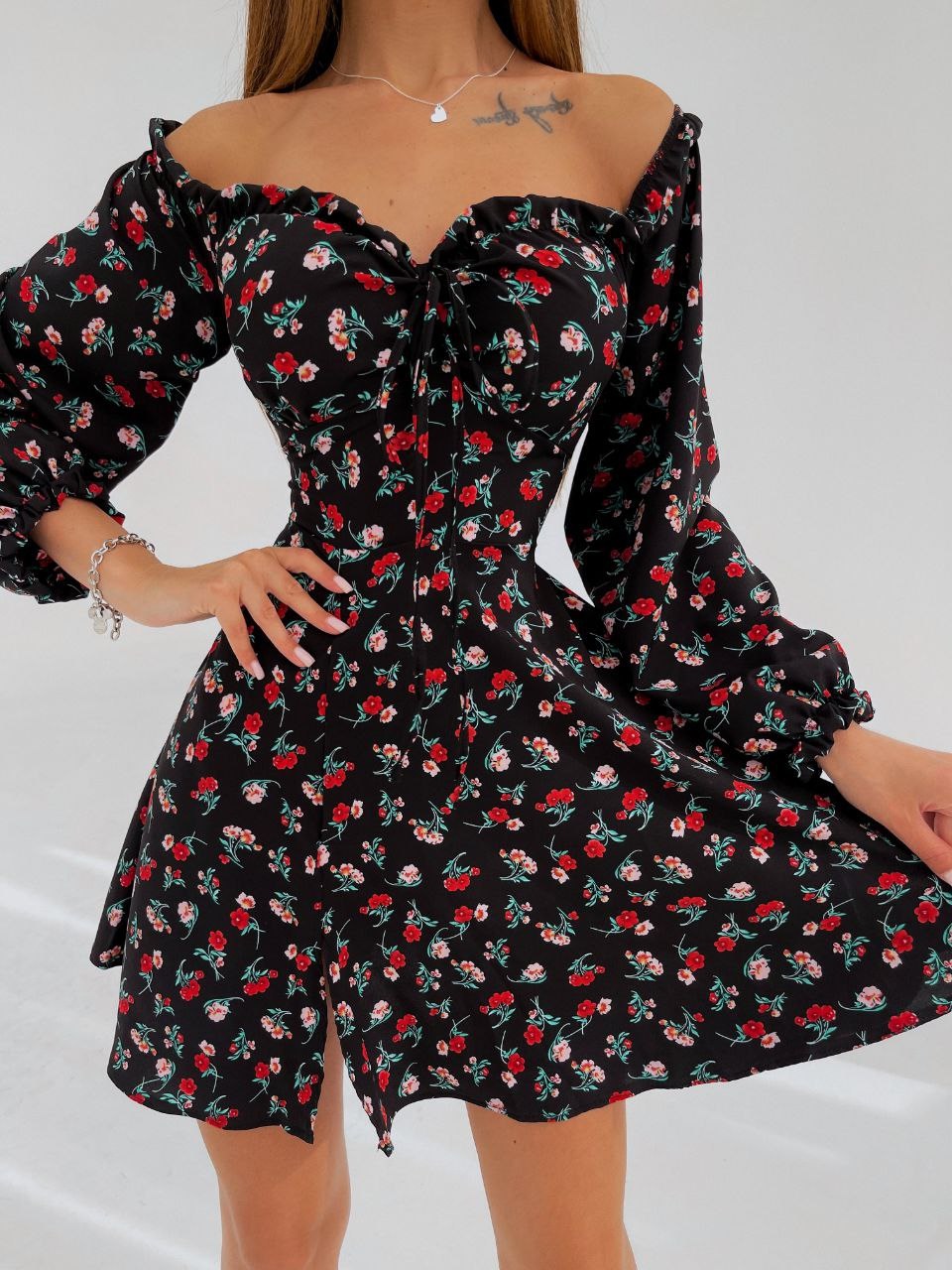 По фасону – спущенные рукава, лиф на завязке, объем регулируется на спинке.