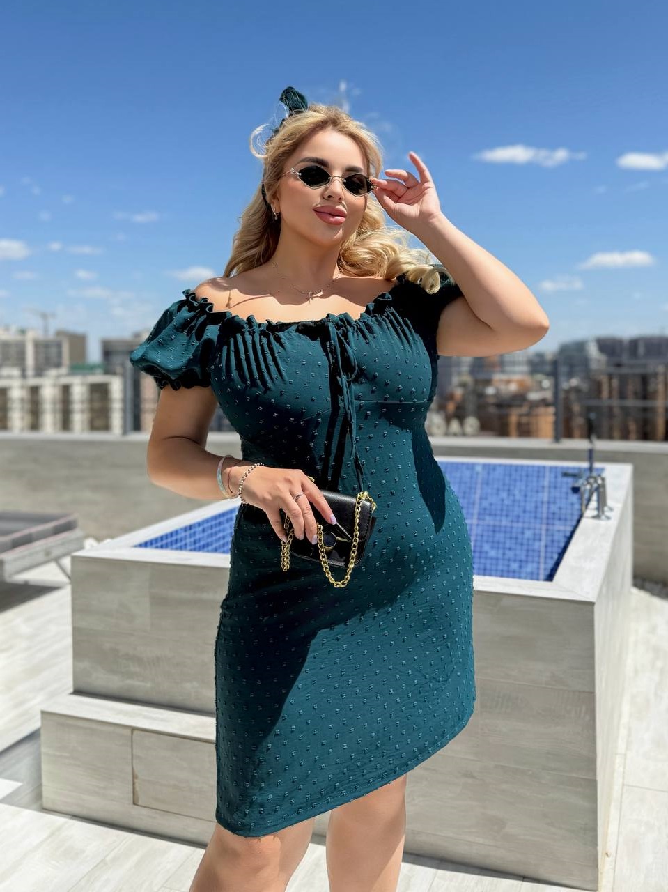 Головна » Магазин » Одяг » Сукня туніка сарафані » Романтическое платье в длине мини с акцентом в форме завязки на груди изумруд