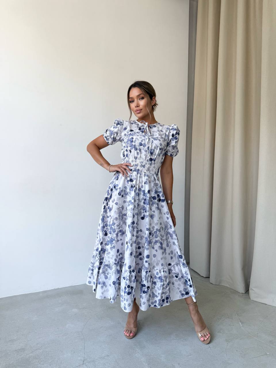• Подробности: эластичная талия, волан по низу, завязка у горловины.