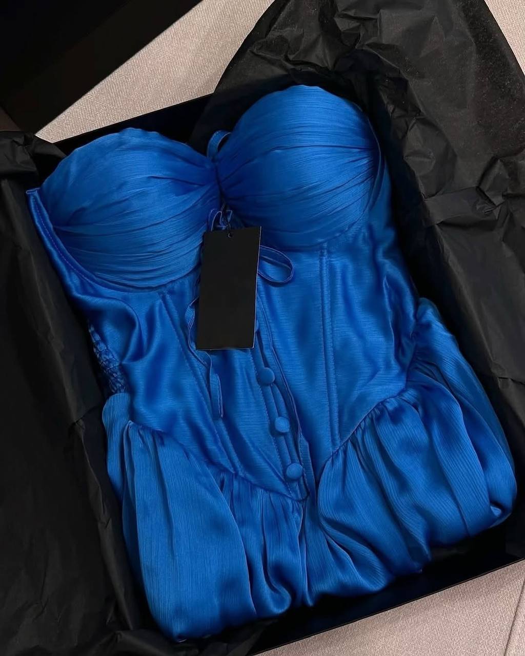 Современная модель с имитацией корсета, с чашками в длине мини.