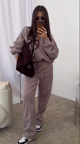 Роскошный костюм для прогулки (кофта на молнии+брюки со стрелкою) двухнитка мокко