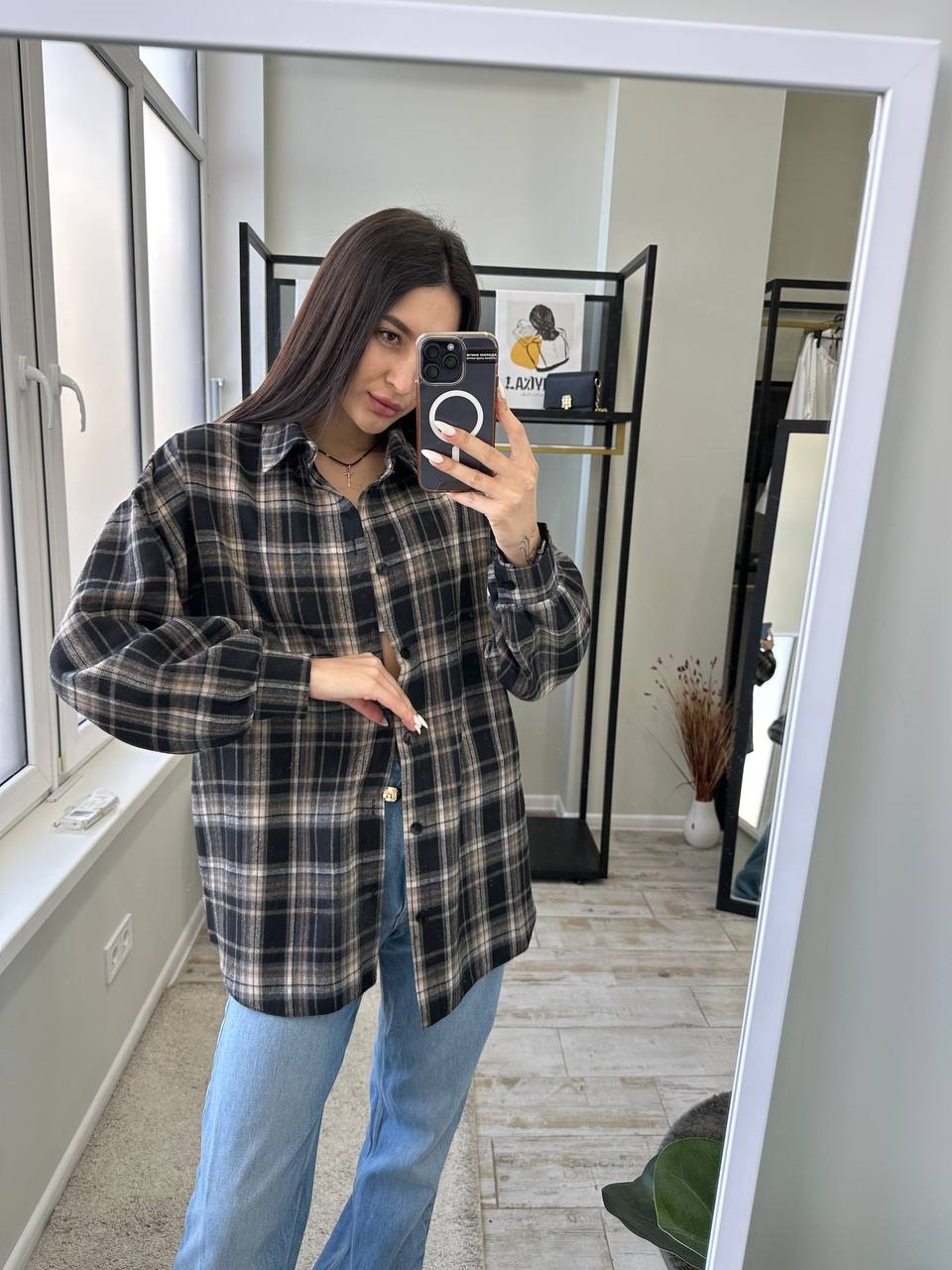 Головна » Магазин » Одяг » Куртки сорочки » Рубашка объемная в клетку с длинным рукавом черный