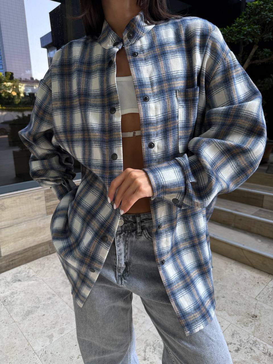 Рубашка оверсайз унисекс (Фланель) синий+молоко