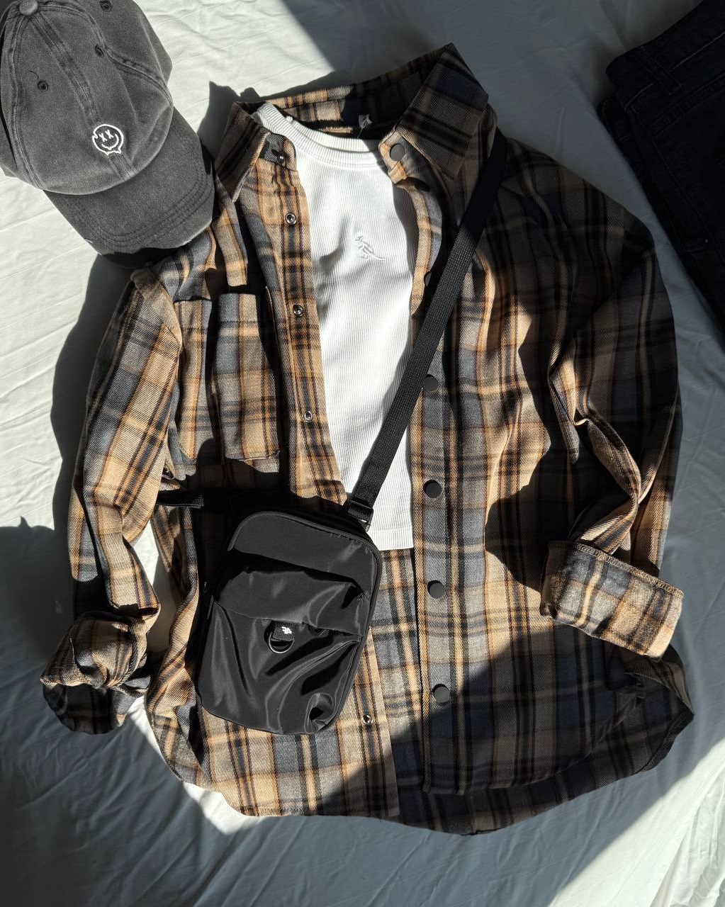 Рубашка oversize в клетку с длинным рукавом карамель