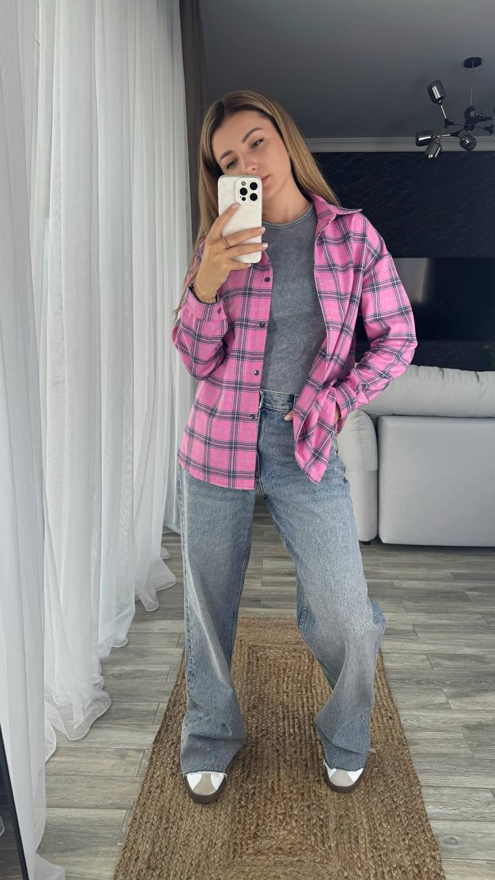 Головна » Магазин » Одяг » Куртки сорочки » Рубашка прямого кроя из фланели с длинным рукавом розовый большая клетка