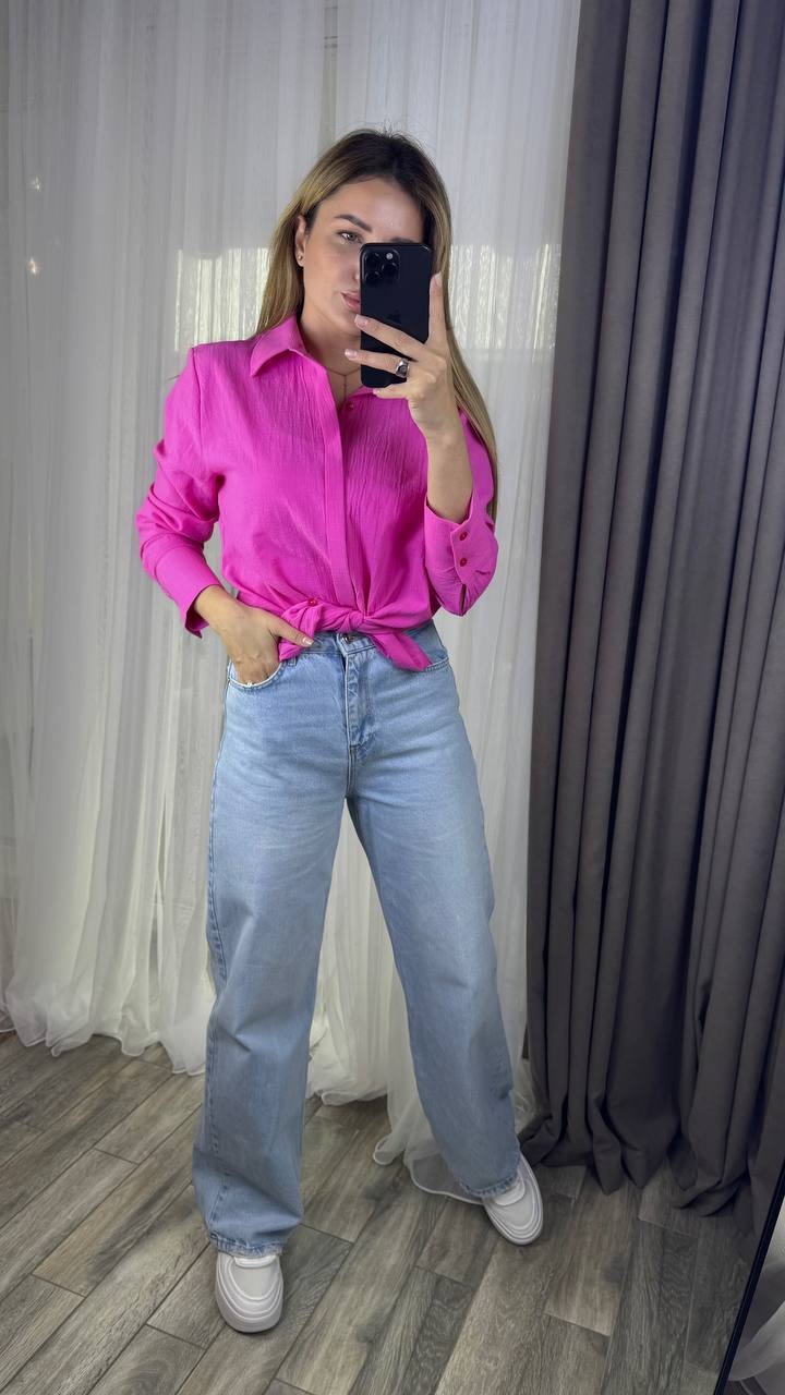 Рубашка прямого кроя низ полукругом лен коттон малина