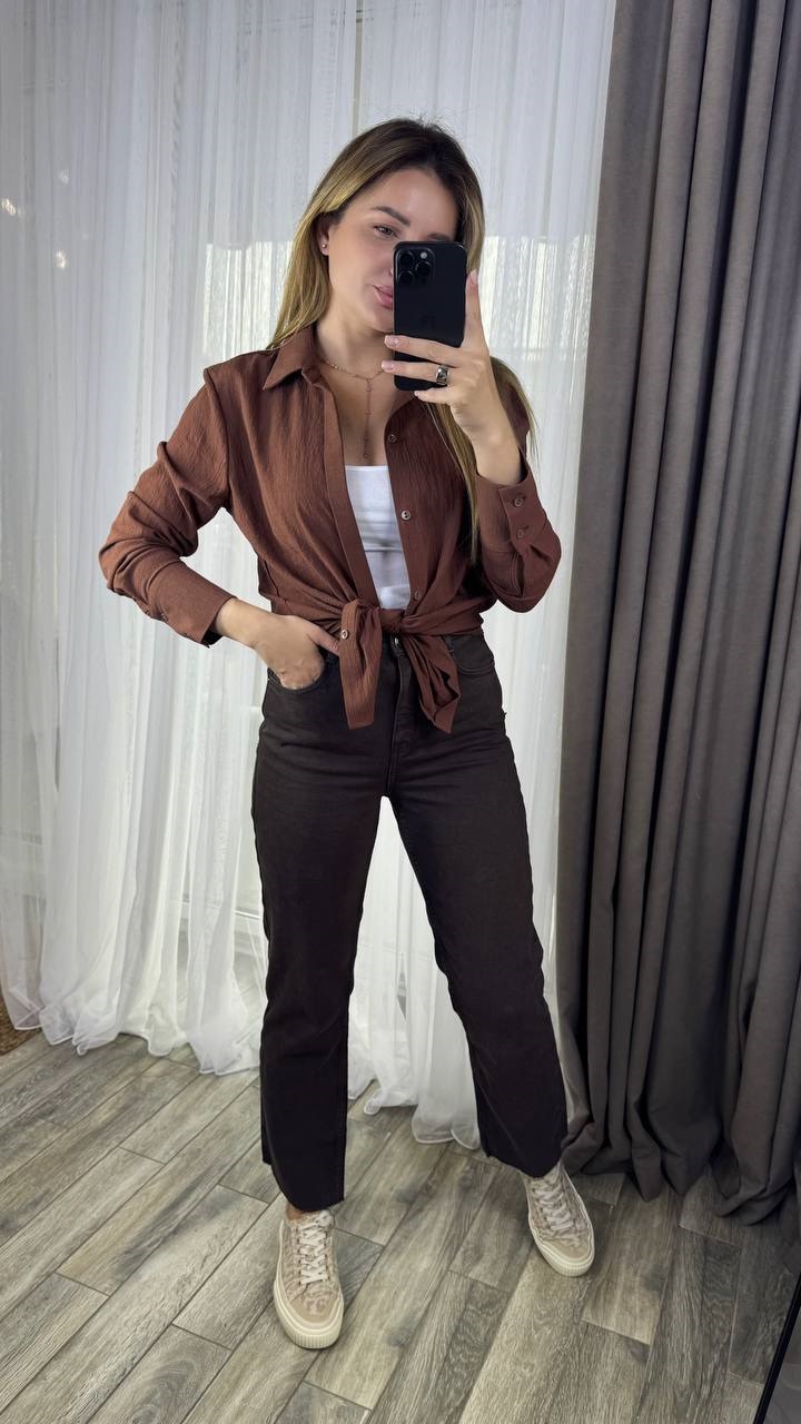Рубашка прямого кроя низ полукругом лен коттон шоколад