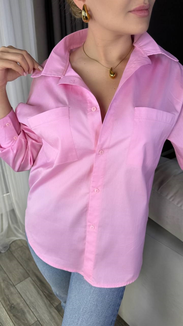 Рубашка прямого кроя, низ полукругом, планка закрытая, лен коттон розовый