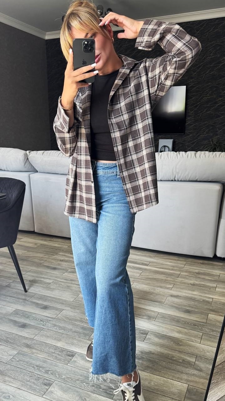 Головна » Магазин » Одяг » Куртки сорочки » Рубашка прямого кроя в клетку+рукав длинный шоколадный с бежевым