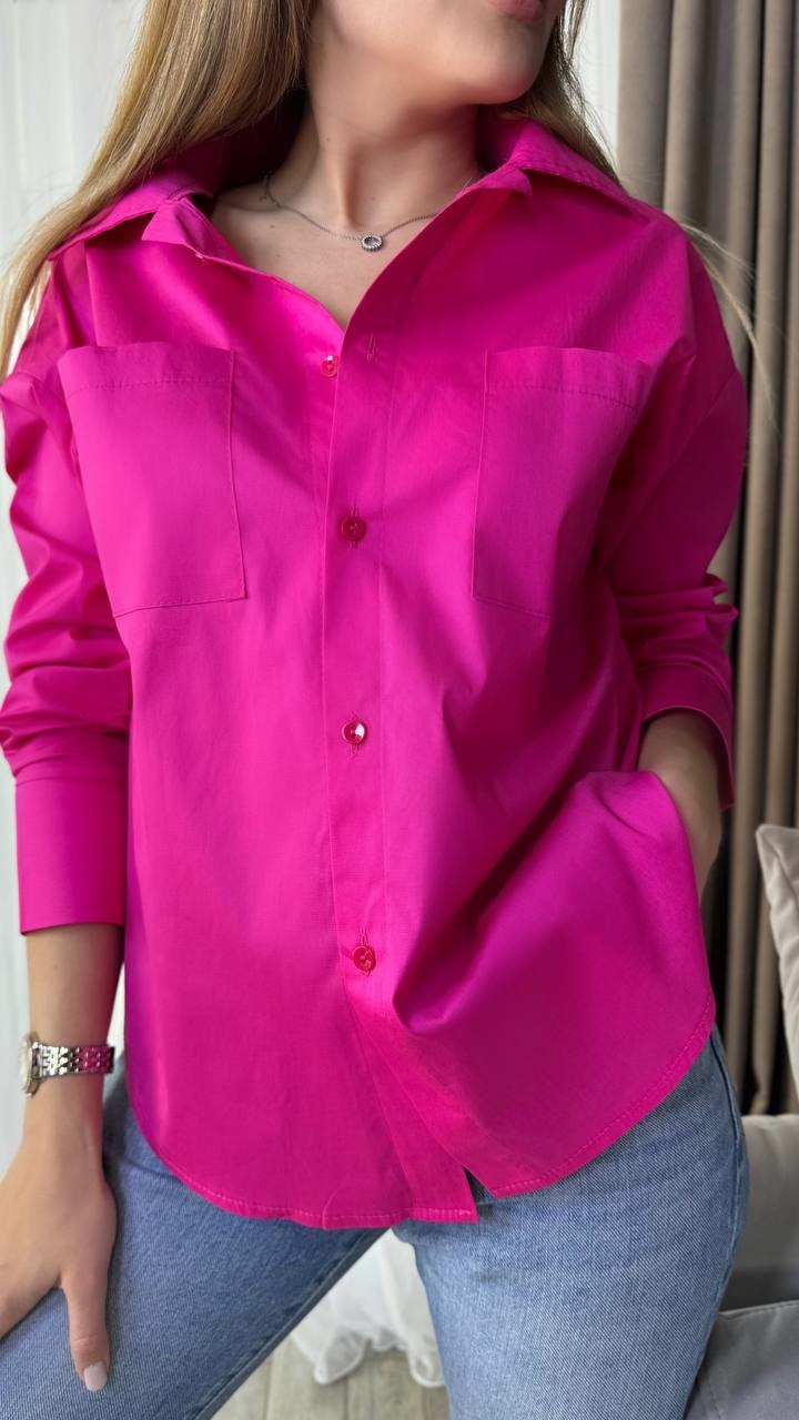 Рубашка прямого свободного кроя, с карманами,коттон малина
