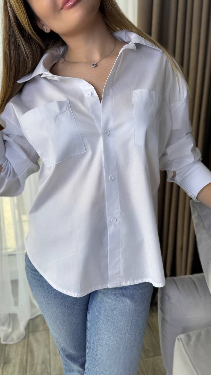 Рубашка прямого свободного кроя, с карманами,коттон белый
