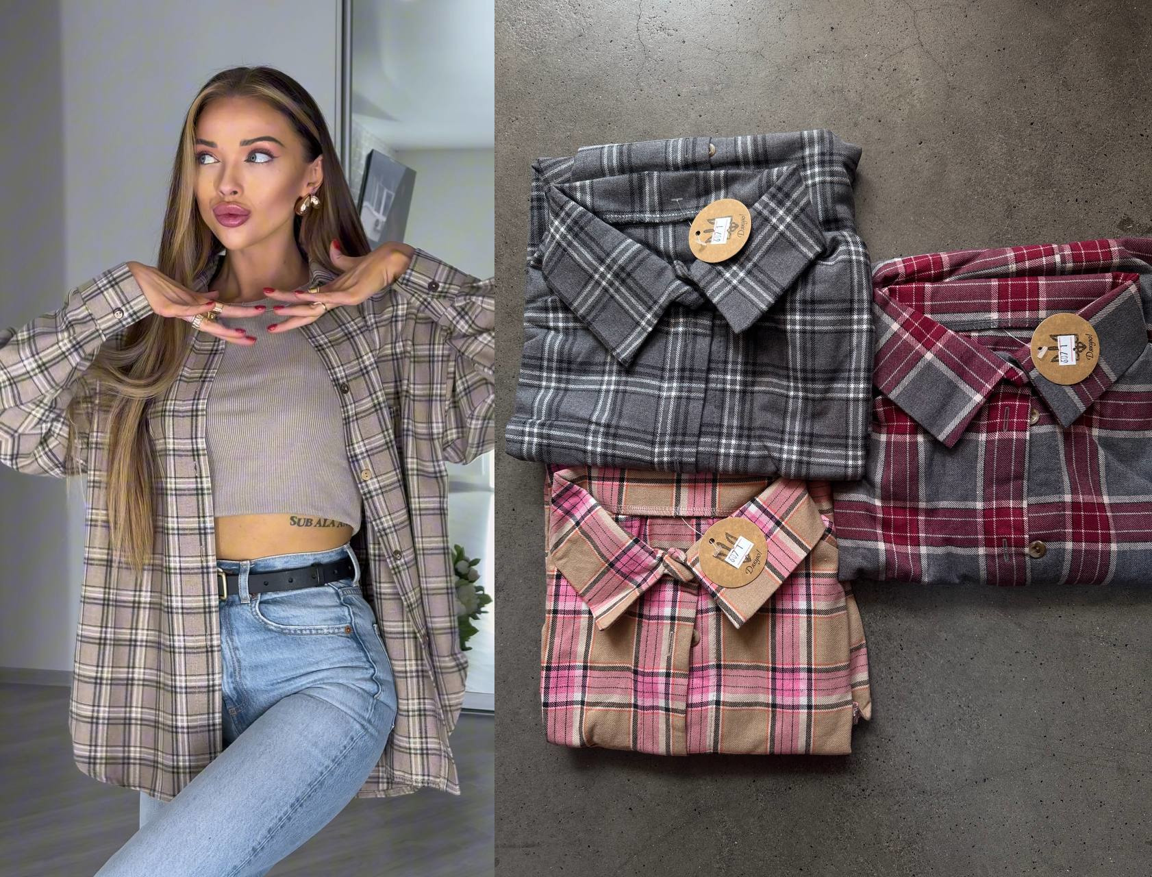 Будьте першим, хто залишив відгук “Рубашка с длинным рукавом в клетку оверсайз фланель бежевый+розовый”“
