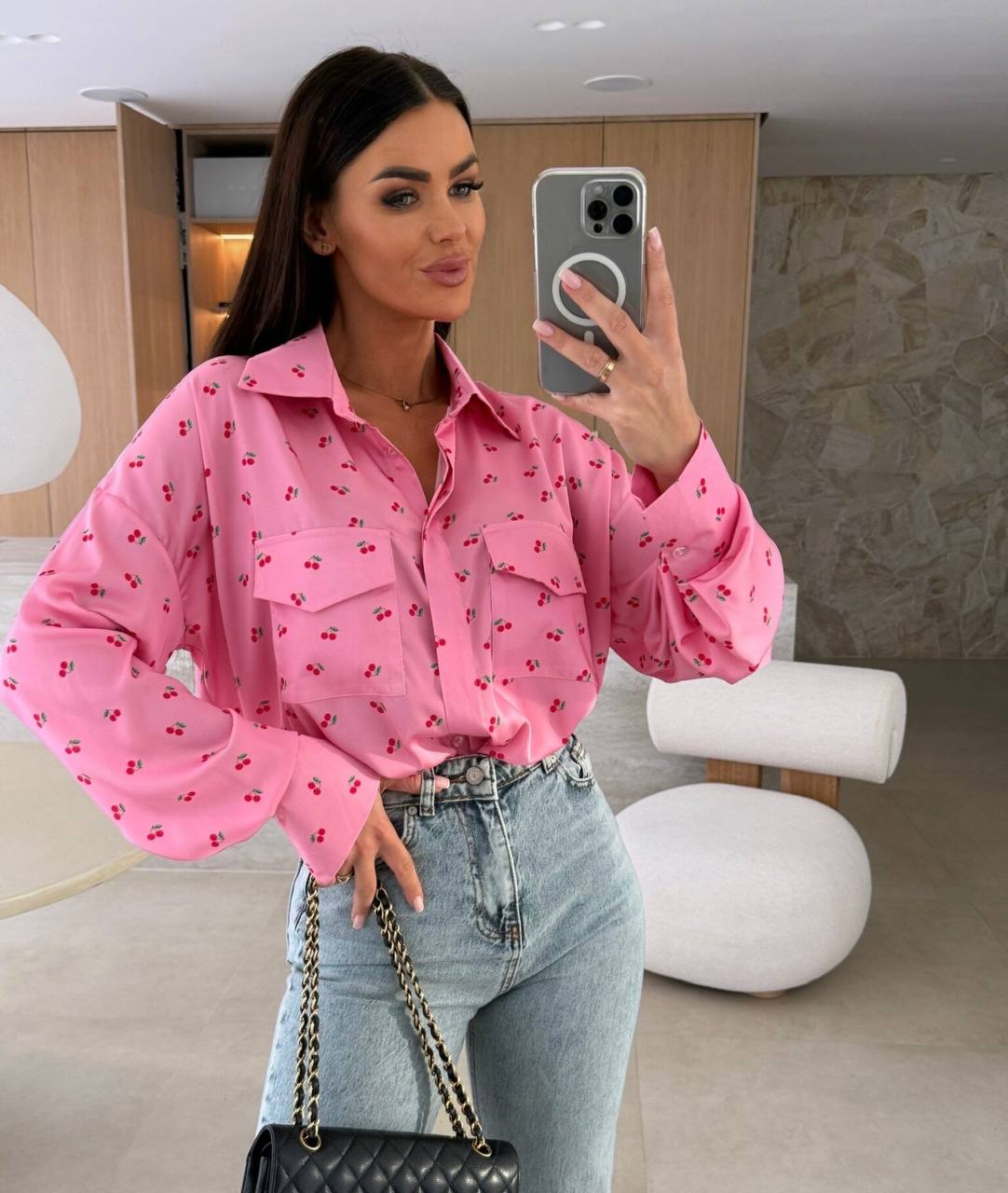 Будьте першим, хто залишив відгук “Рубашка с узором сладкой вишни свободного кроя розовый”“