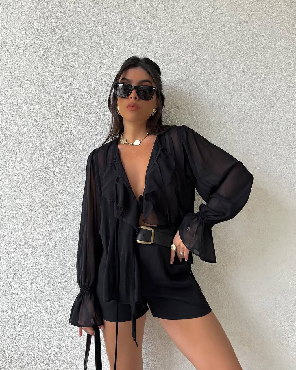 Головна » Магазин » Одяг » Куртки сорочки » Рубашка с волончиками (мультишифон) черный