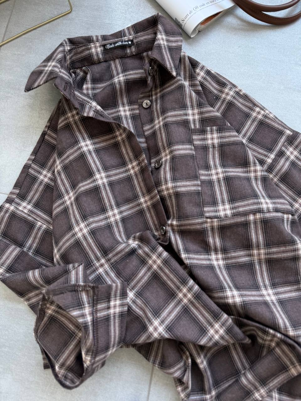 Рубашка унисекс в клетку (фланель) светло-коричневый