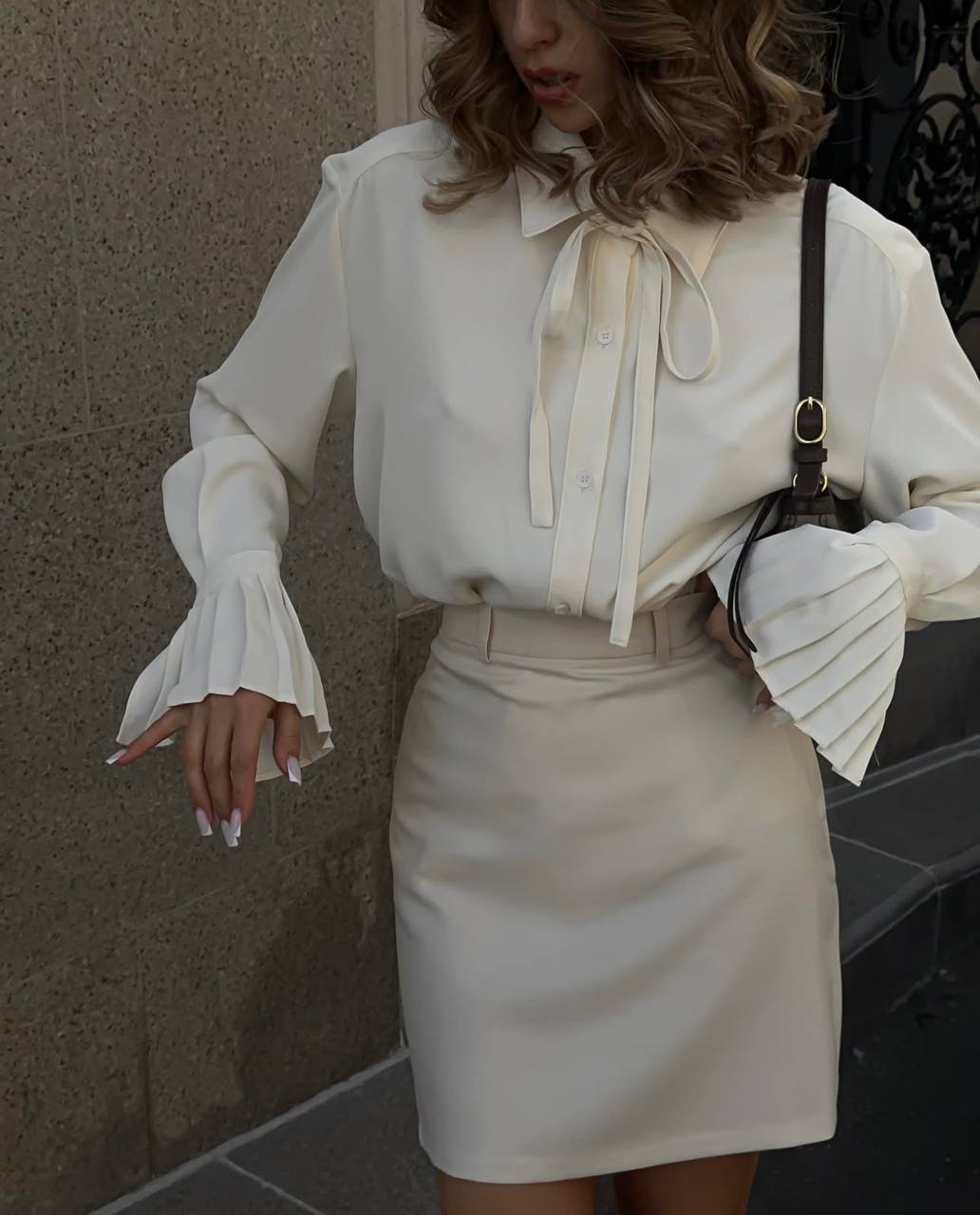 Рубашка в классическом стиле всегда в тренде✨️ Легкая ткань, идеальный крой, а плиссированные манжеты добавляют в образ женственности и утонченности.