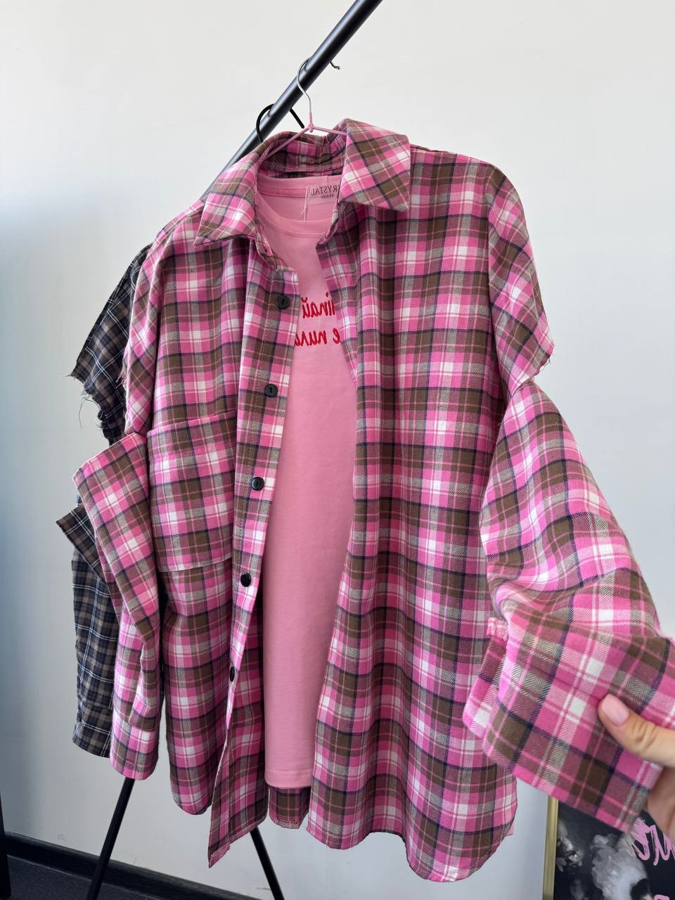 Будьте першим, хто залишив відгук “Рубашка в клетку с эффектом надорванных рукавов шоколадно-розовый”“