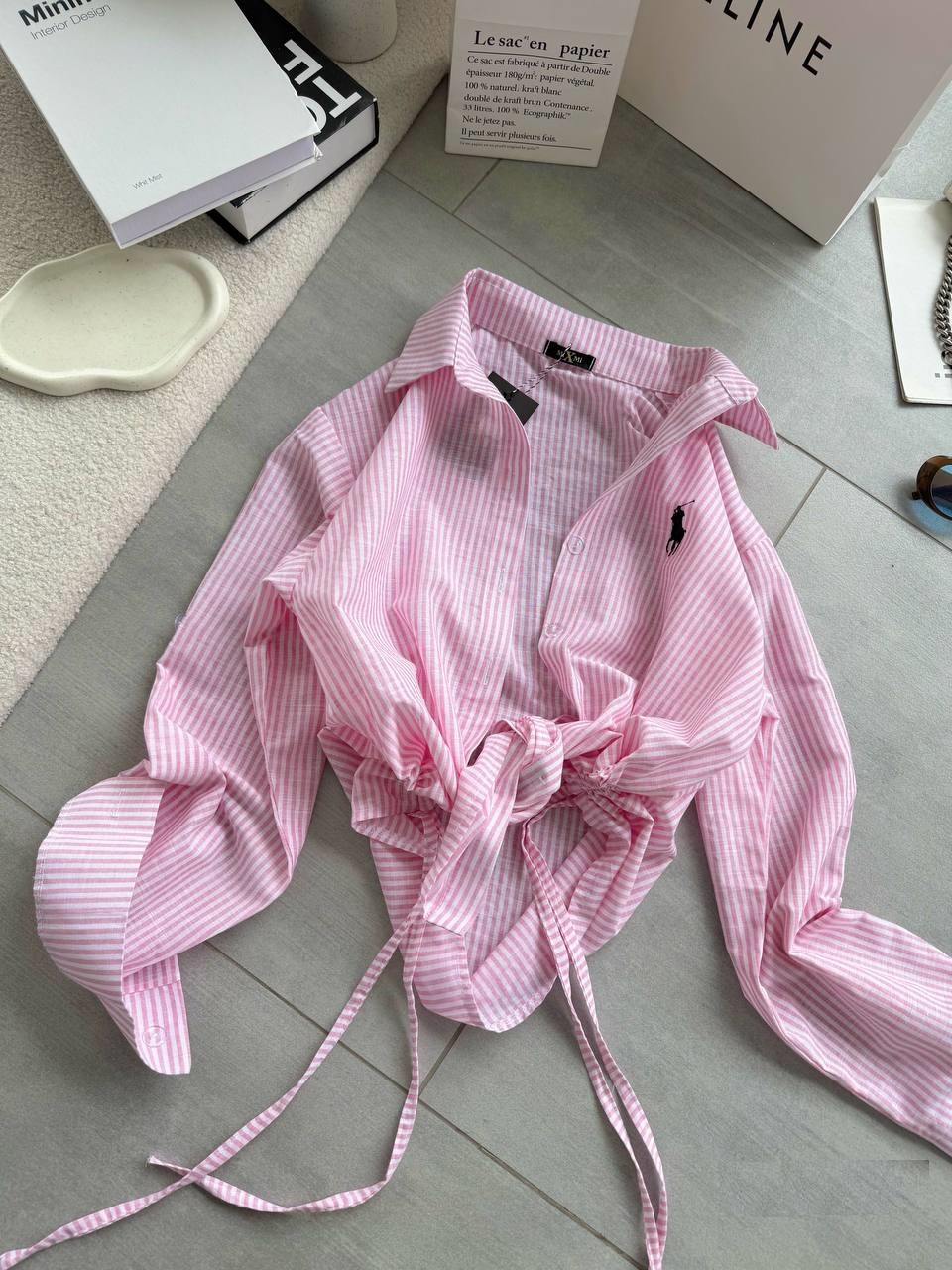 Головна » Магазин » Одяг » Куртки сорочки » Рубашка в полоску с кулиской по бокам розовый