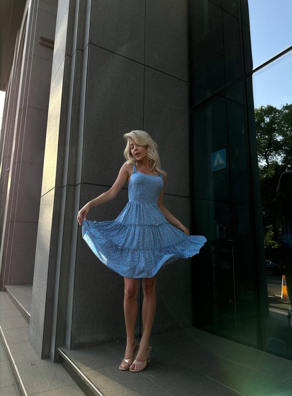Головна » Магазин » Одяг » Сукня туніка сарафані » Сарафан ярусами на бретелях+спинка на резинках голубой