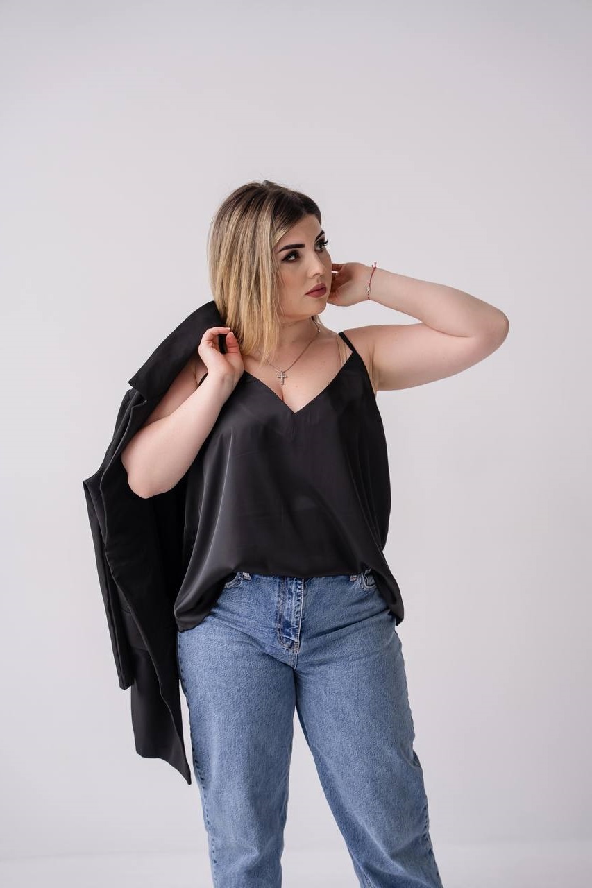 Будьте першим, хто залишив відгук “Шелковая майка на тонких брителях черный”“