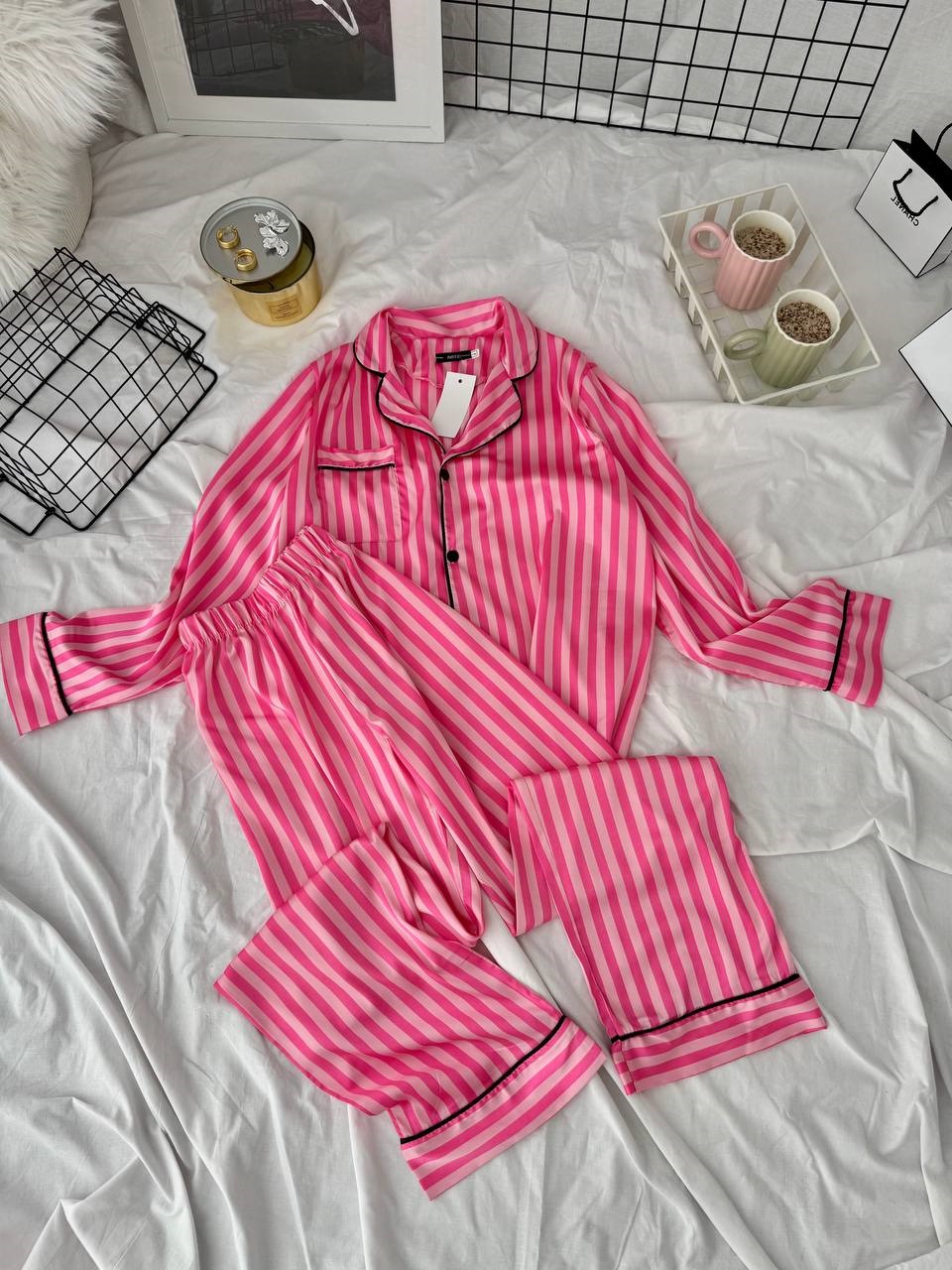 Головна » Магазин » Одяг » Піжама та домашні костюми » Шелковая пижама в полоску (рубашка с небольшим воротником+брюки прямого кроя) малина