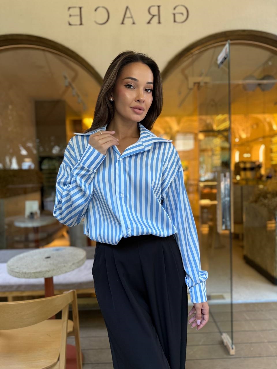 Стильная рубашка в полоску идеально подойдет под ваш любимый образ.