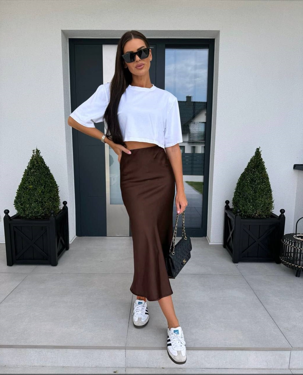 Юбочка в идеальной длине, незаменимая вещь в гардеробе, подойдет как под кроссовки, так и под каблуки.
