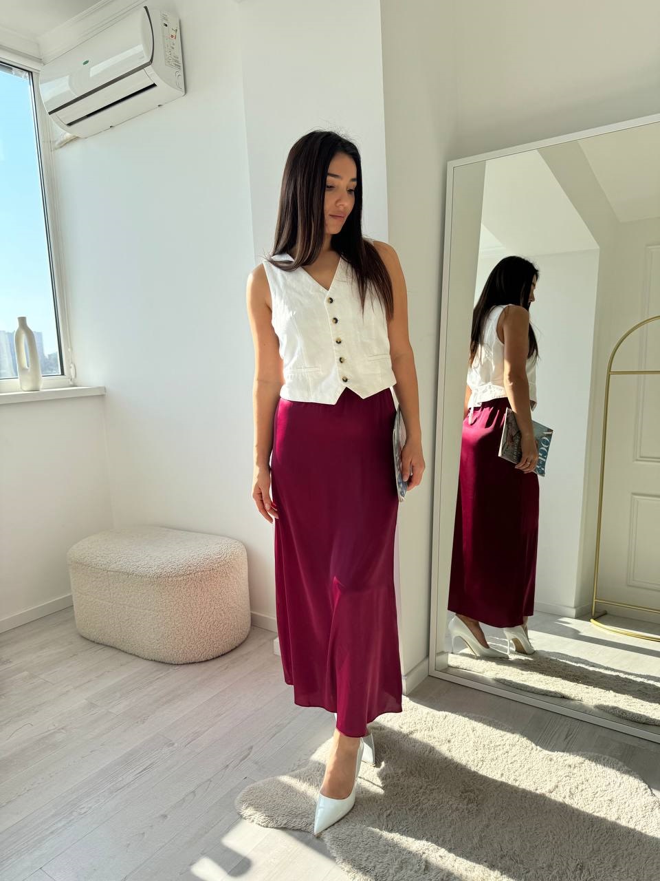Головна » Магазин » Одяг » Спідниці шортів » Шелковая юбка длиной макси талия на резинке марсала