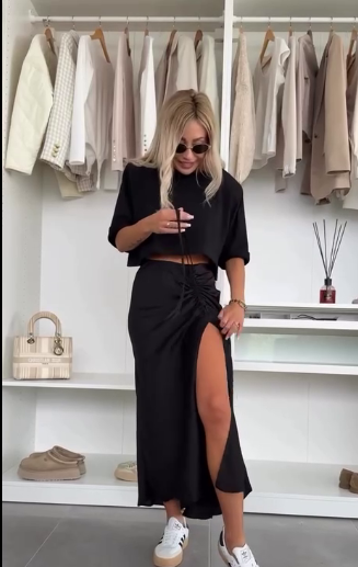 Шелковая юбка длиной миди с высоким разрезом сбоку черный