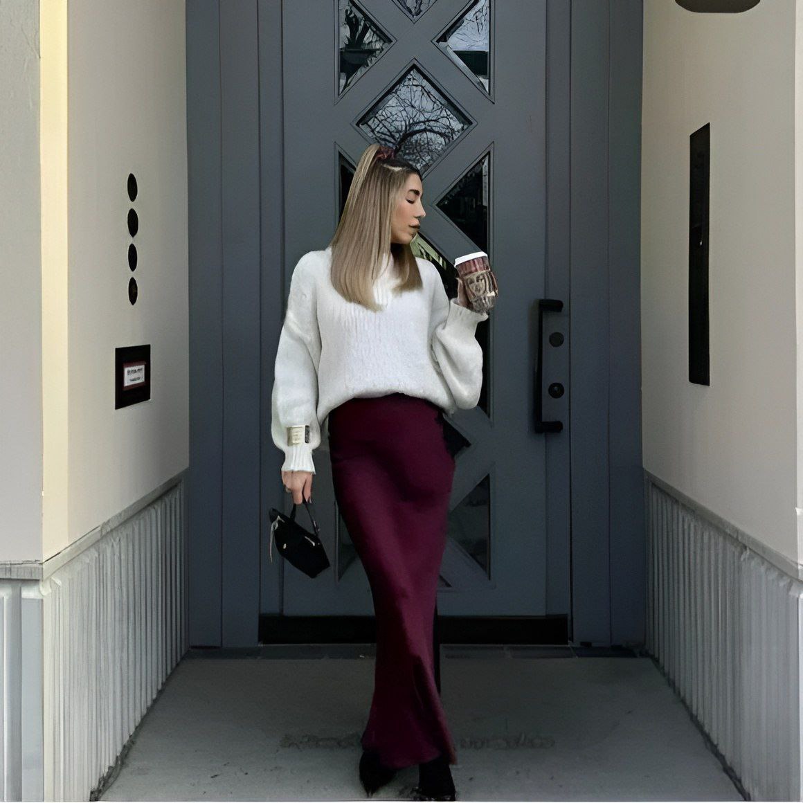 Юбка на резинке, тянущаяся к объему бедер. Роскошная шелковая макси-юбка – это вирусная новинка этого сезона универсальный элемент гардероба. Гладкий материал с легким блеском придает элегантность, а высокая посадка подчеркивает талию. Прямой силуэт с легкой драпировкой создает женственный и утонченный образ. Юбка идеально сочетается как с классическими блузами и топами, так и с повседневными свитшотами и кроссовками. Отличный вариант для вечерних выходов, прогулок по городу и стильных повседневных лугов.