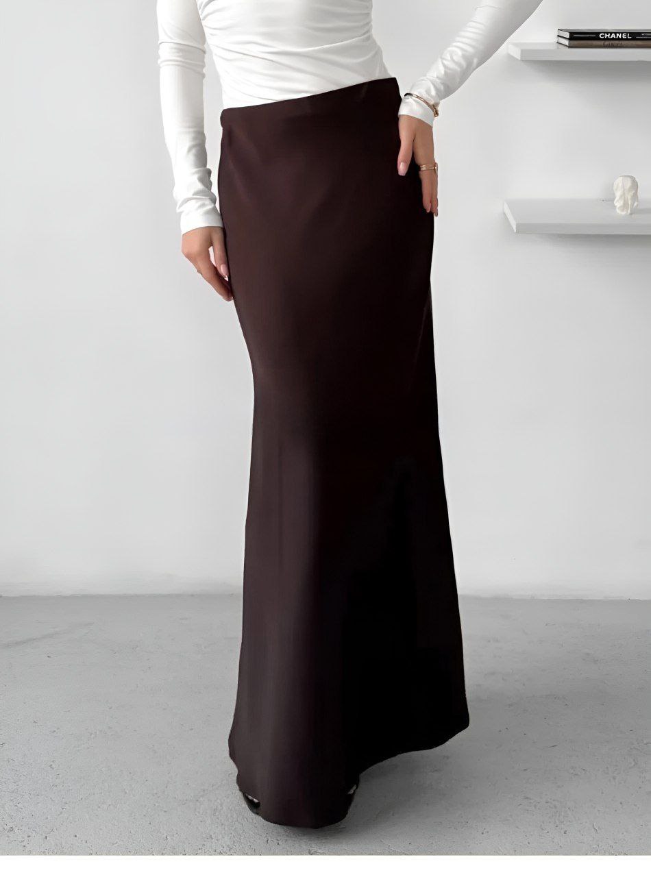 Юбка на резинке, тянущаяся к объему бедер. Роскошная шелковая макси-юбка – это вирусная новинка этого сезона универсальный элемент гардероба. Гладкий материал с легким блеском придает элегантность, а высокая посадка подчеркивает талию. Прямой силуэт с легкой драпировкой создает женственный и утонченный образ. Юбка идеально сочетается как с классическими блузами и топами, так и с повседневными свитшотами и кроссовками. Отличный вариант для вечерних выходов, прогулок по городу и стильных повседневных лугов.