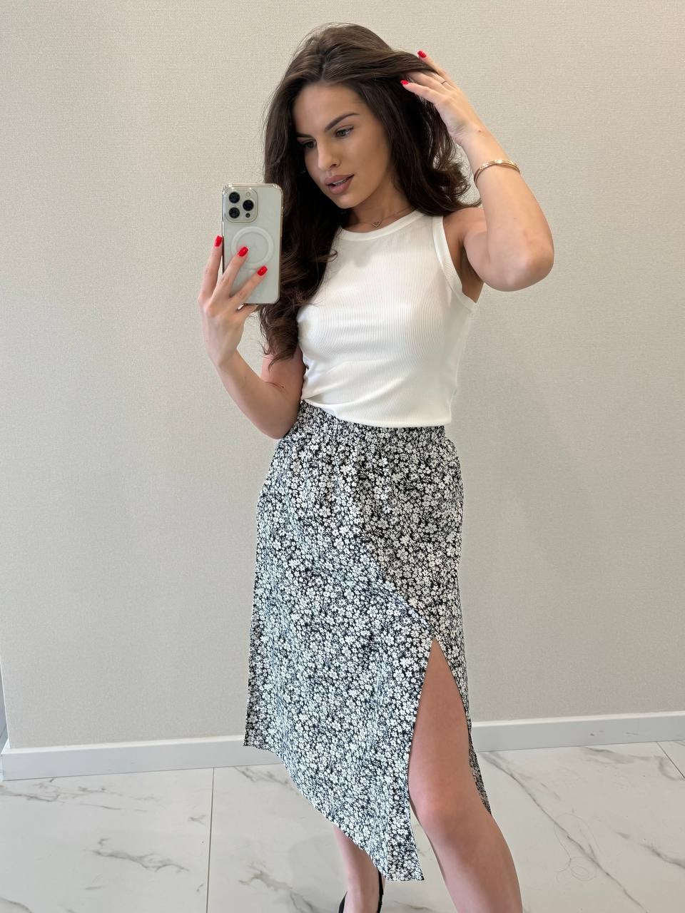идеальная длина миди и изысканный разрез создают привлекающий внимание образ.
