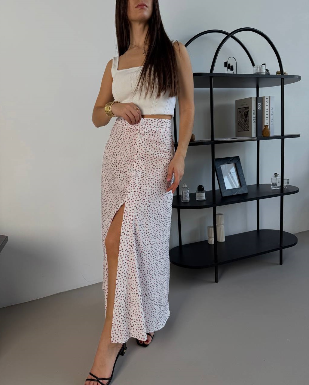 Головна » Магазин » Одяг » Спідниці шортів » Шелковистая юбка в цветочный принт-РОЗОВЫЙ на пуговицах длиной миди белый