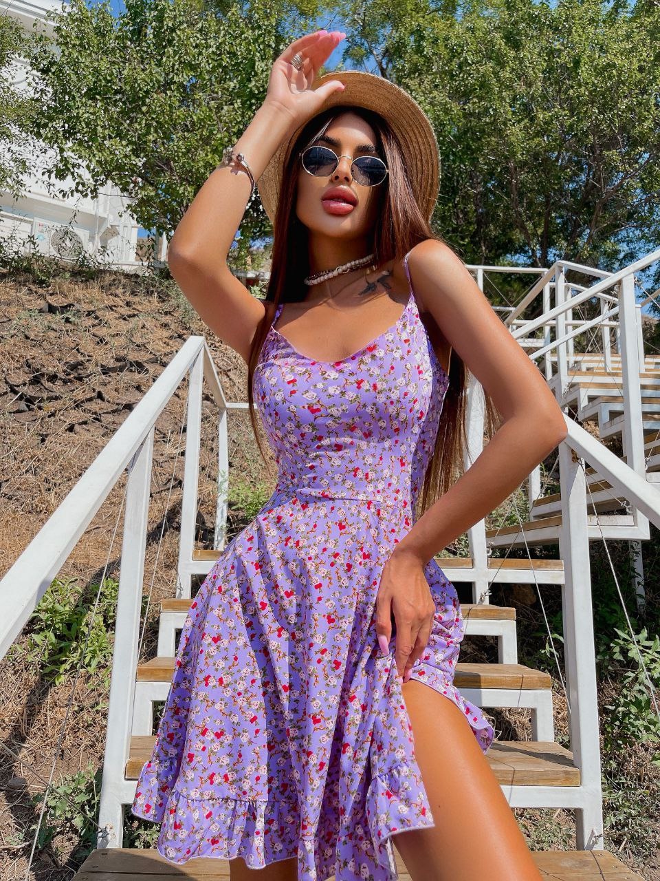 Платье выполнено из легкой и летучей ткани. Дышащая и очень приятная к телу!