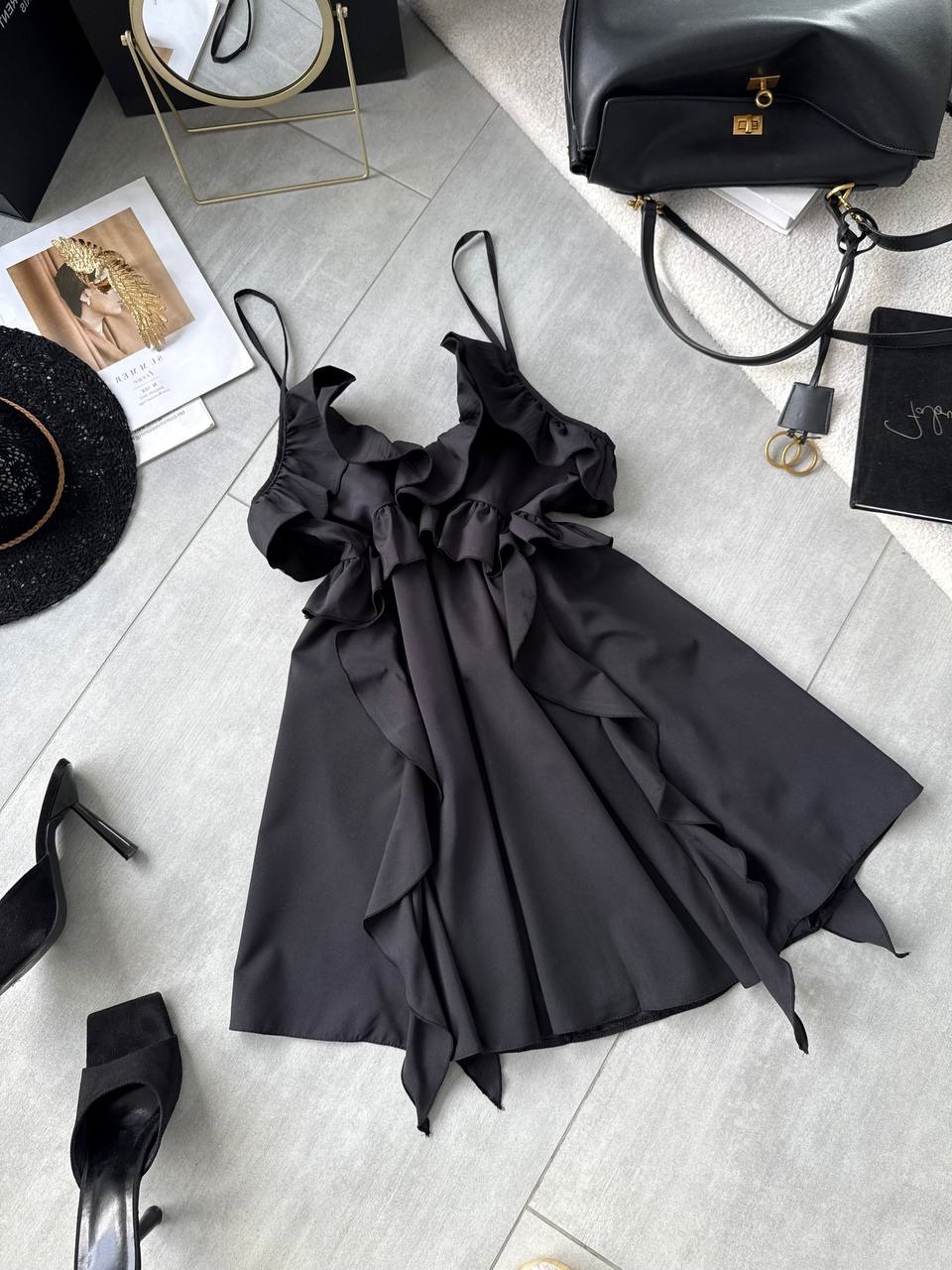 Будьте першим, хто залишив відгук “Шелковистое Платье на бретелях в стиле бохо с воланами черный”“