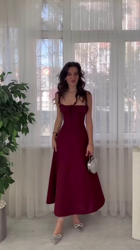 Тонкие бретели, глубокий бордовый оттенок и шнуровка на спине – здесь идеально все ❤️