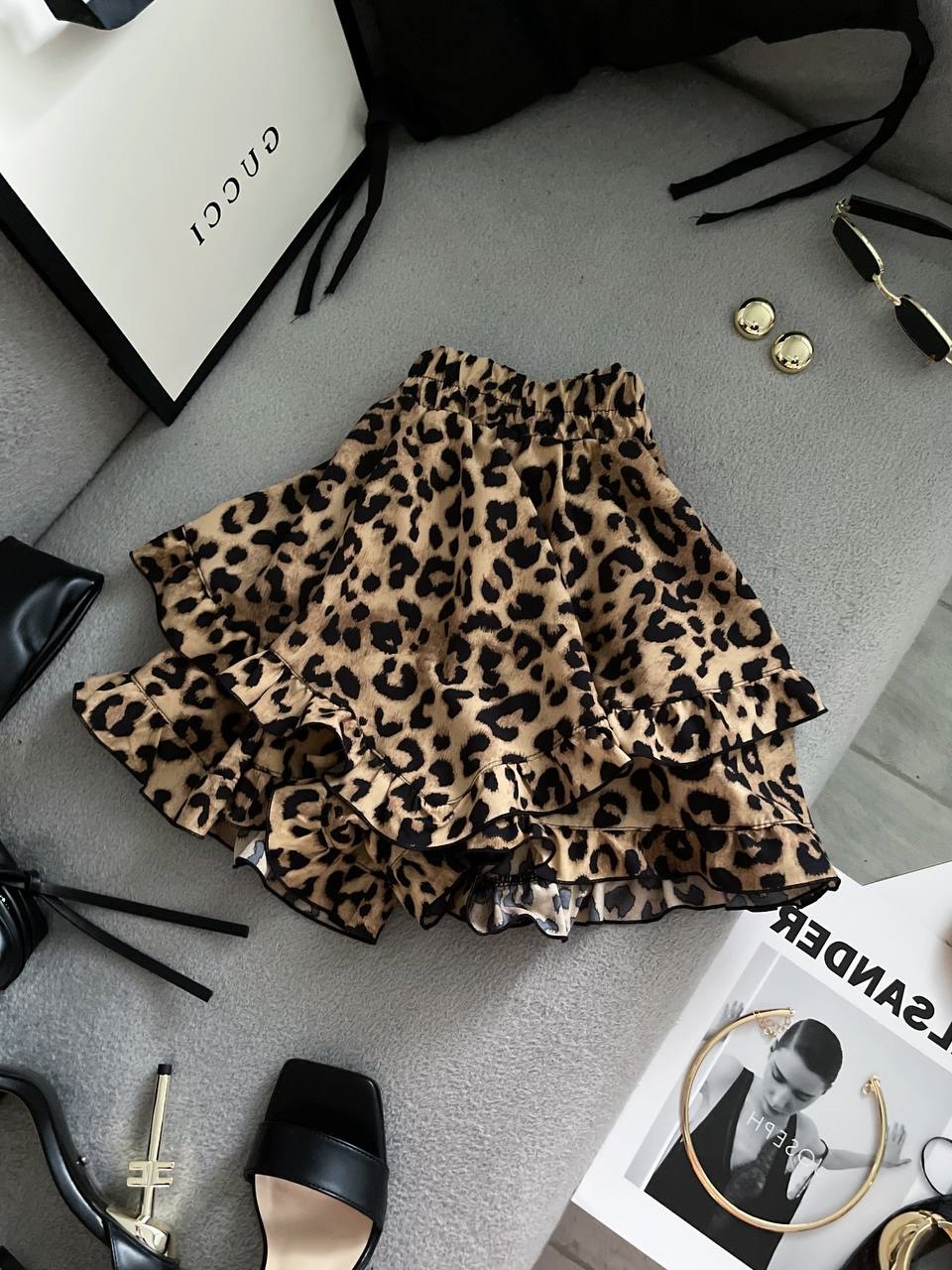 Шелковистые юбка-шорты с оборочками+талия на резинке леопардовый принт