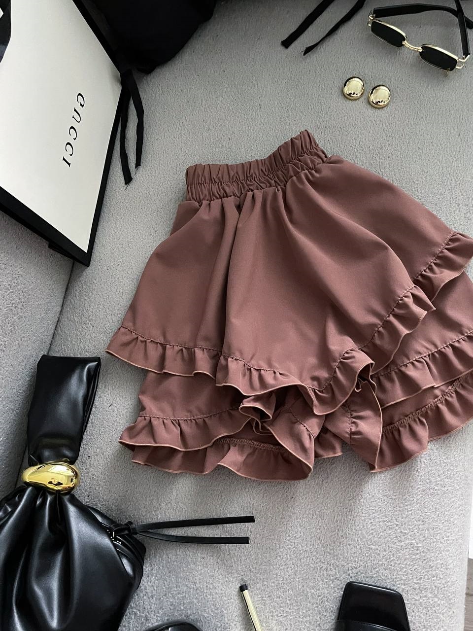 Шелковистые юбка-шорты с оборочками+талия на резинке мокко