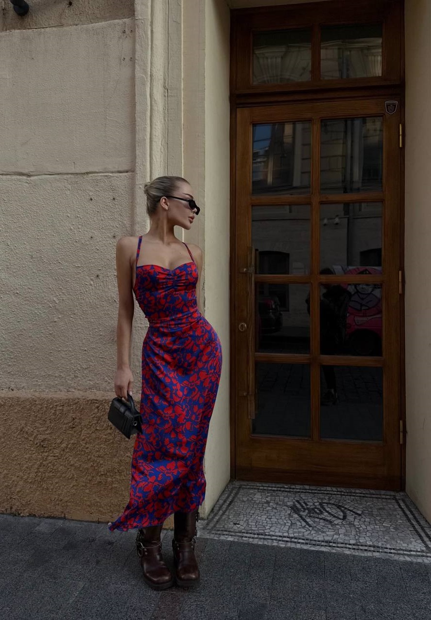 Будьте першим, хто залишив відгук “Шелковое платье на бретелях с высоким разрезом сине-оранж”“