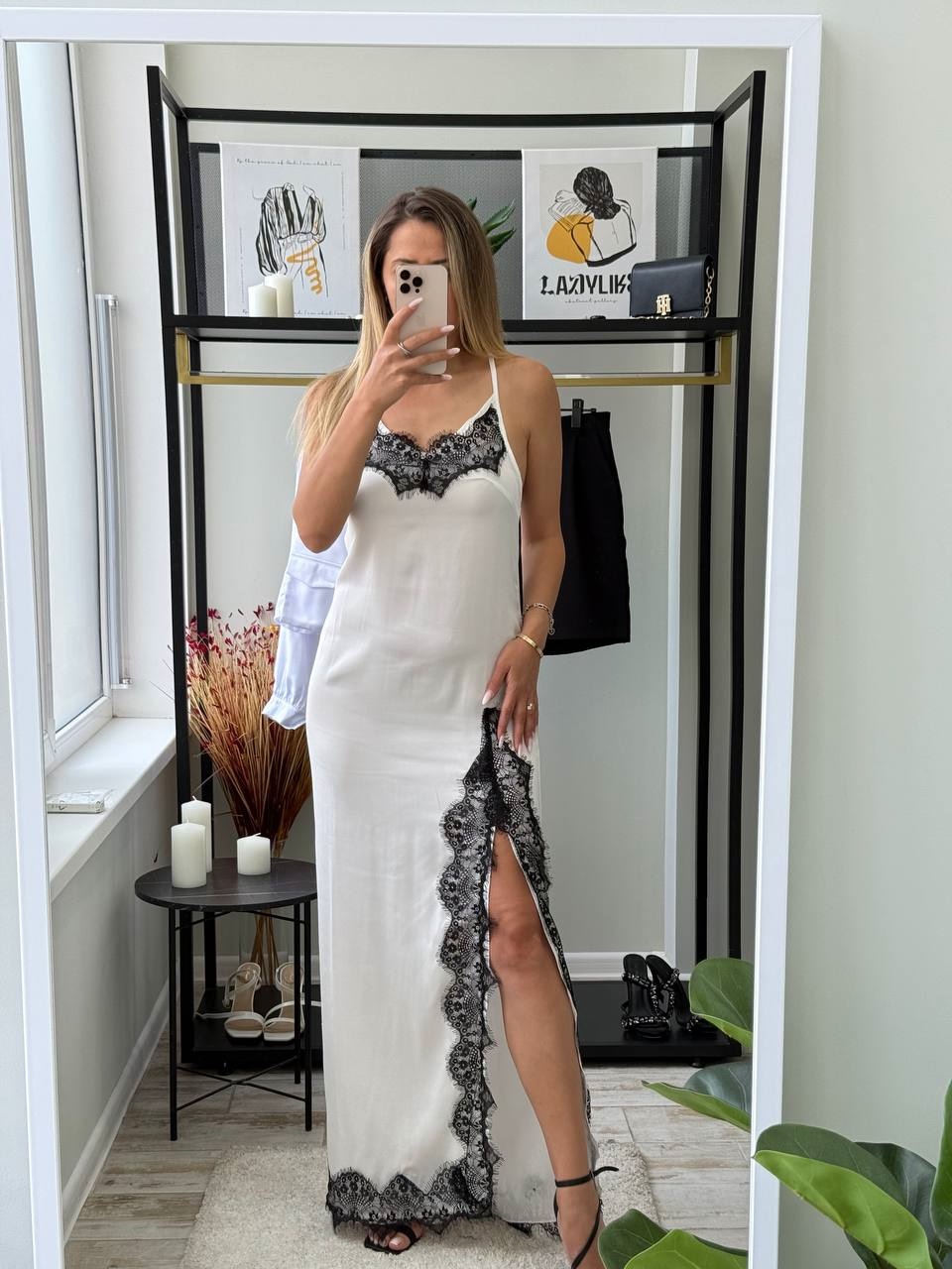 Головна » Магазин » Одяг » Сукня туніка сарафані » Шелковое Платье с кружевом на бретелях длиной макси молочный