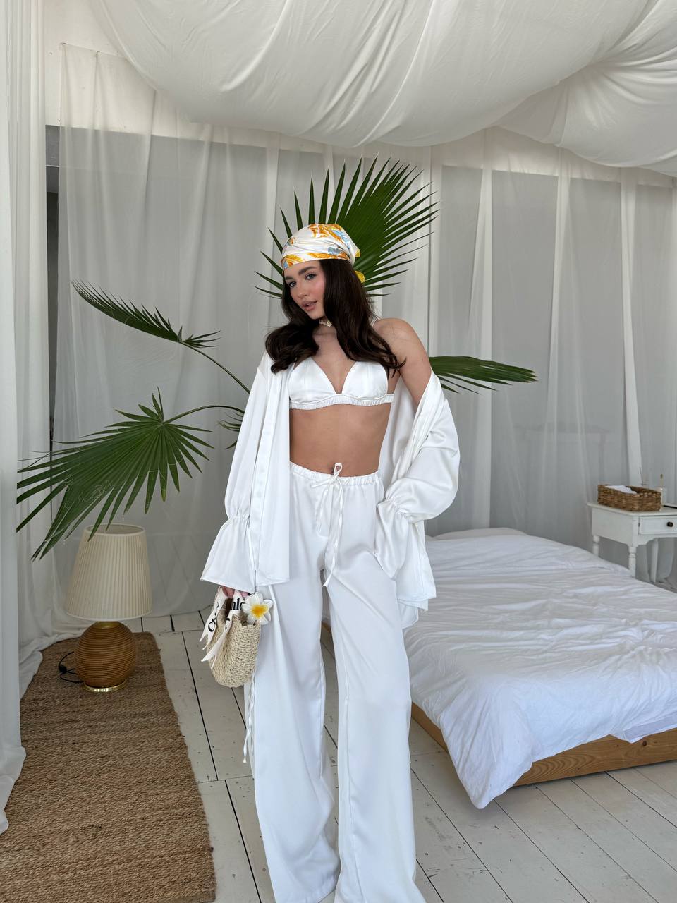 Шелковый комплект тройка Кимоно + палаццо + топ бра