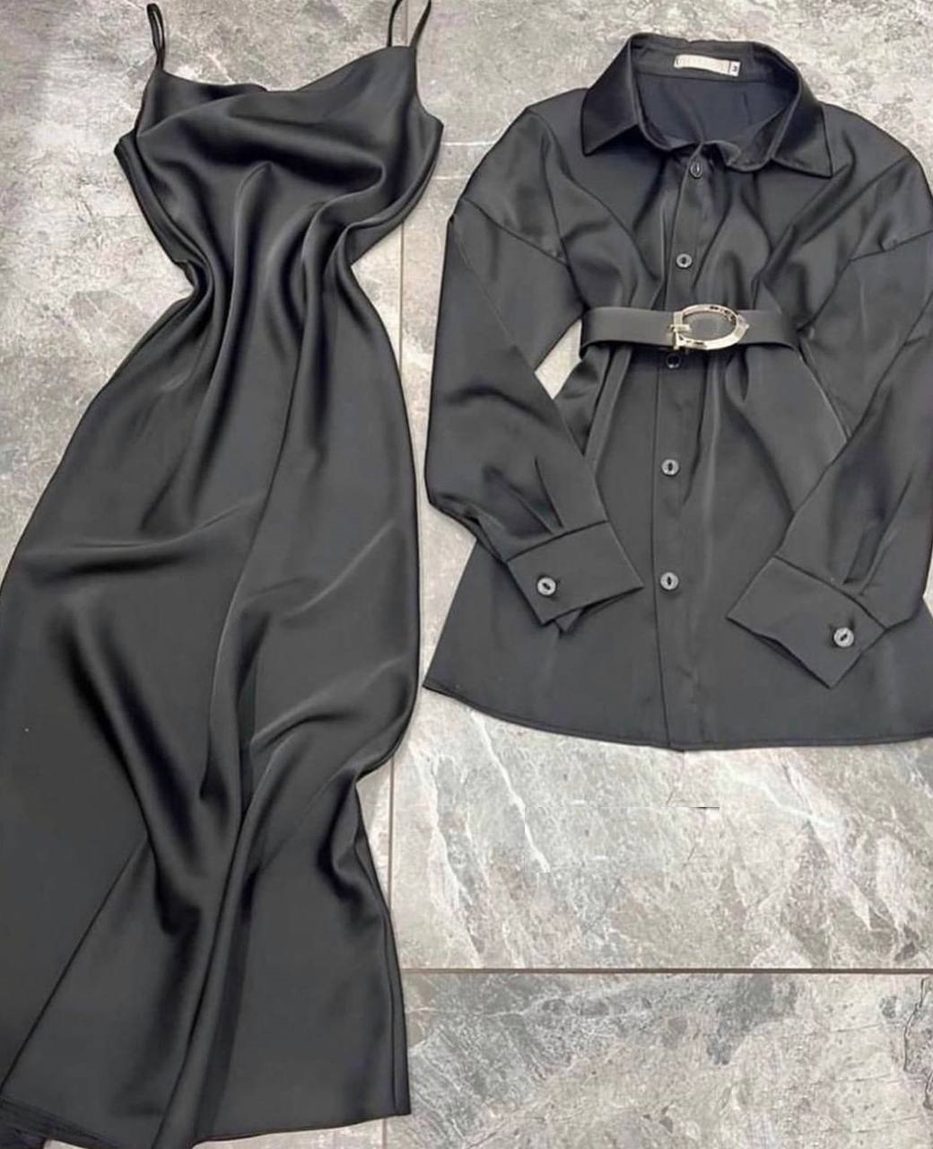 Шелковый Костюм (платье с рубашкой) черный