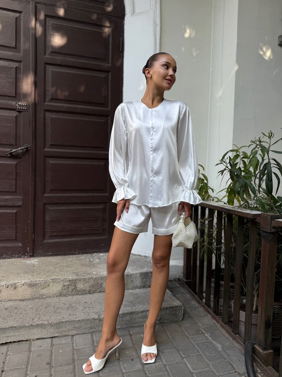Шорты свободного кроя с подворотами, они смотрятся очень нежно и комфортно.