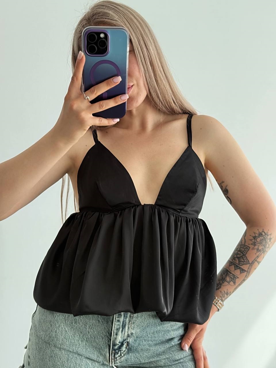 Будьте першим, хто залишив відгук “Шелковый топ на тонких бретелях с завышенной талией черный”“