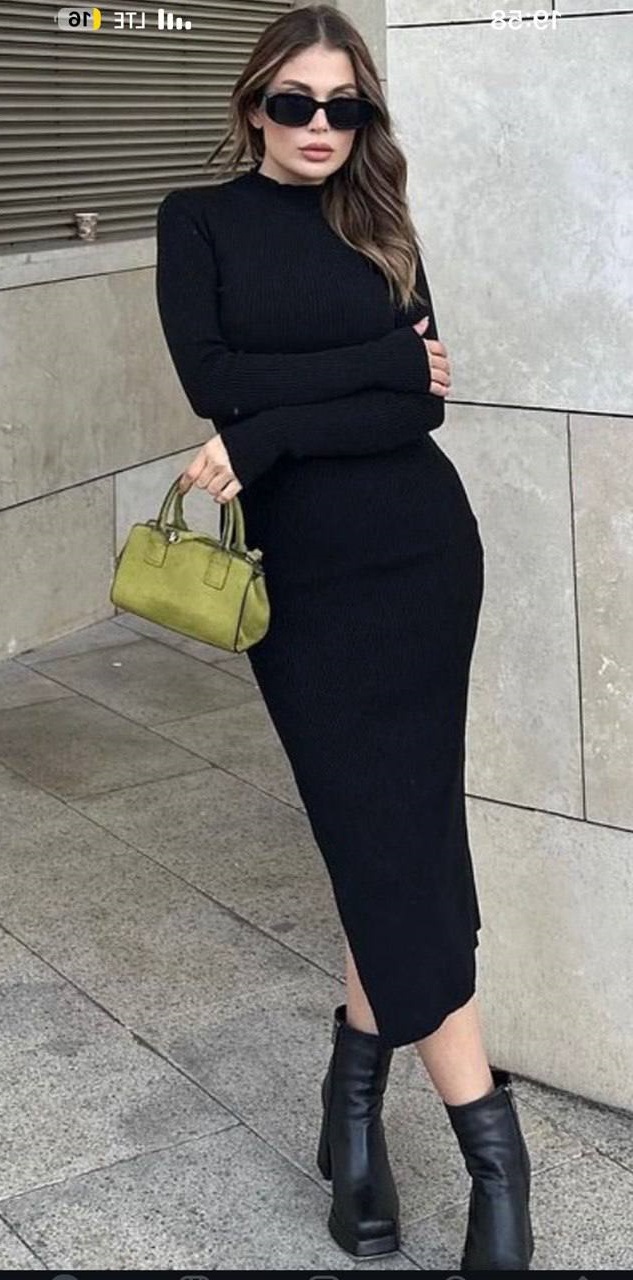 Шикарное трикотажное платье А-силуэта с високой горловиной черный