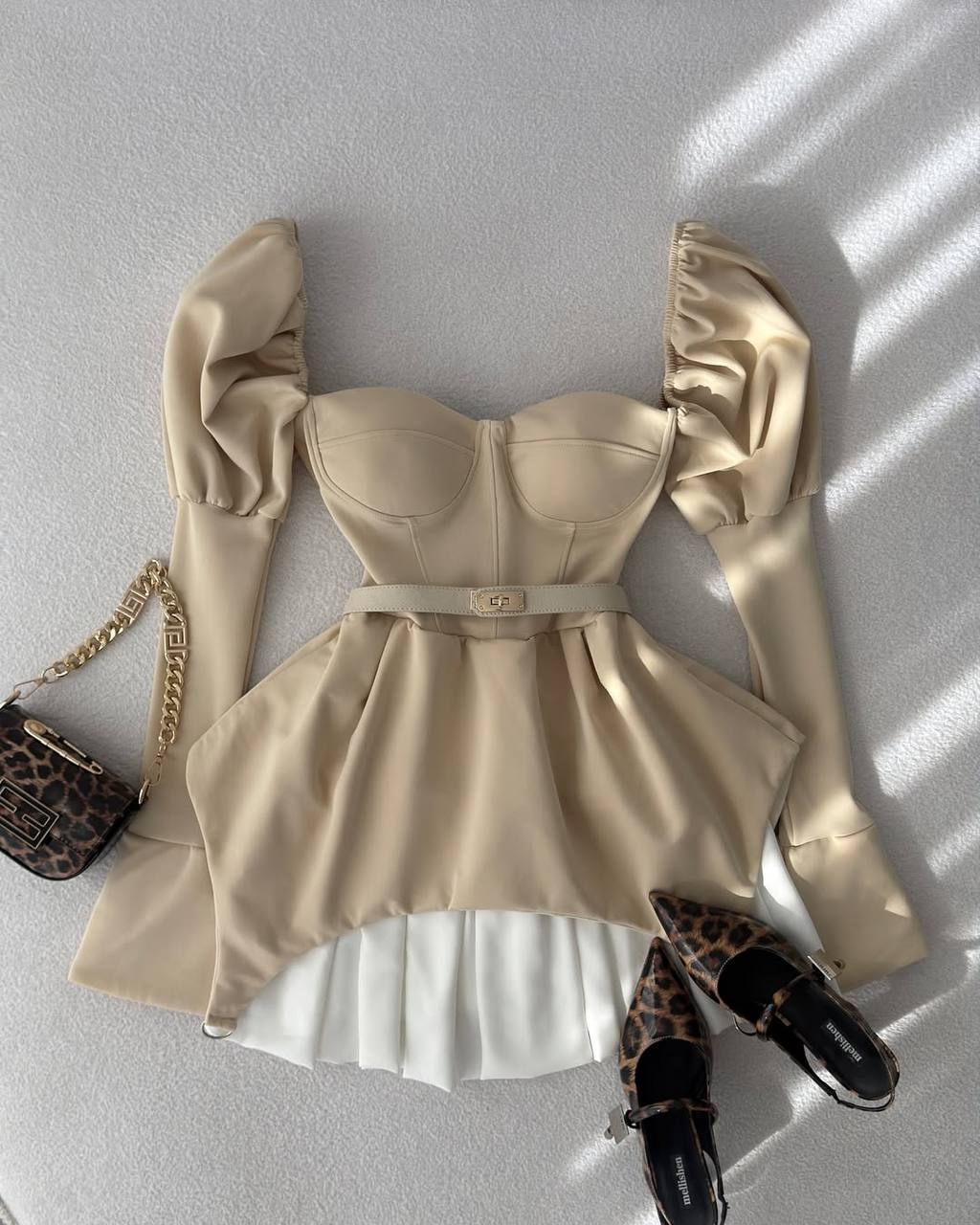 Будьте першим, хто залишив відгук “Современный комплект: платье с чашками + юбка беж”“