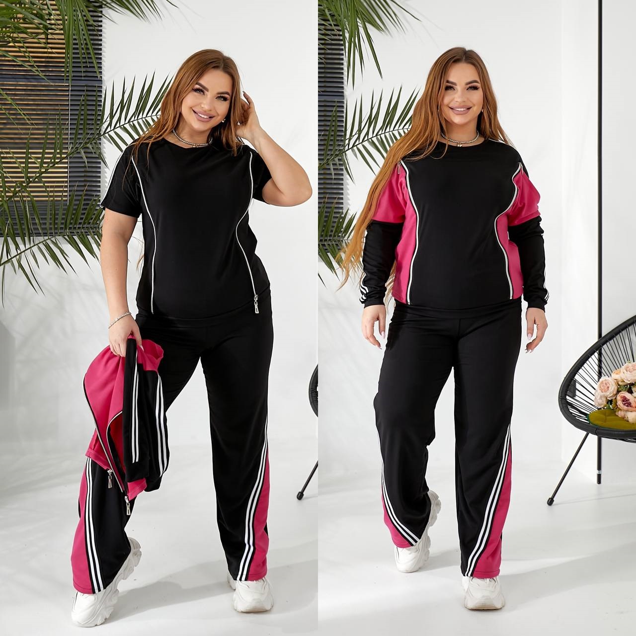 Будьте першим, хто залишив відгук “Современный костюм трасформер с контрастными вставками (кофта-футболка+брюки) двухнитка малина”“