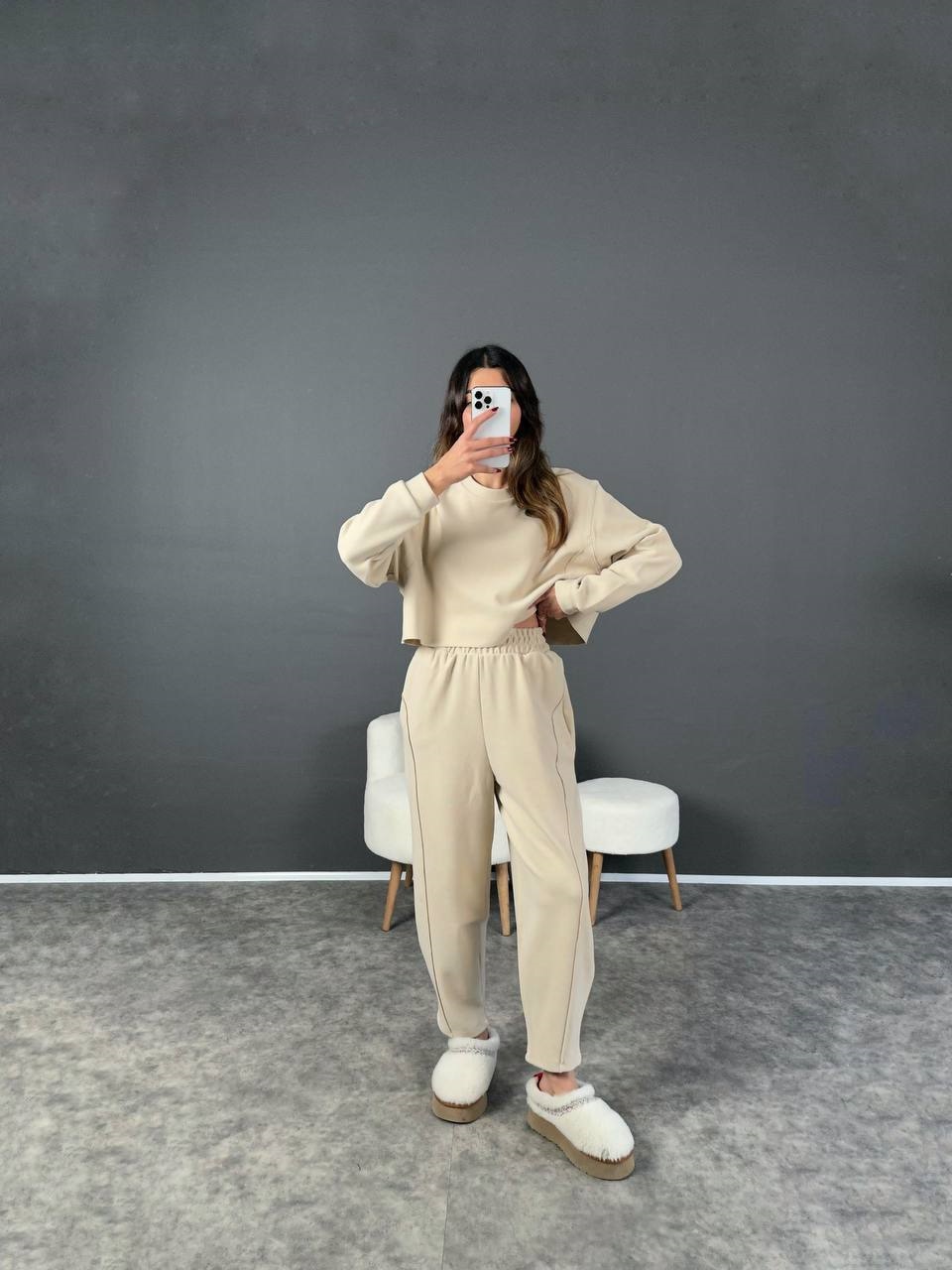 Спорт костюм: укороченное объемное худи с необработанными краями + штаны.
