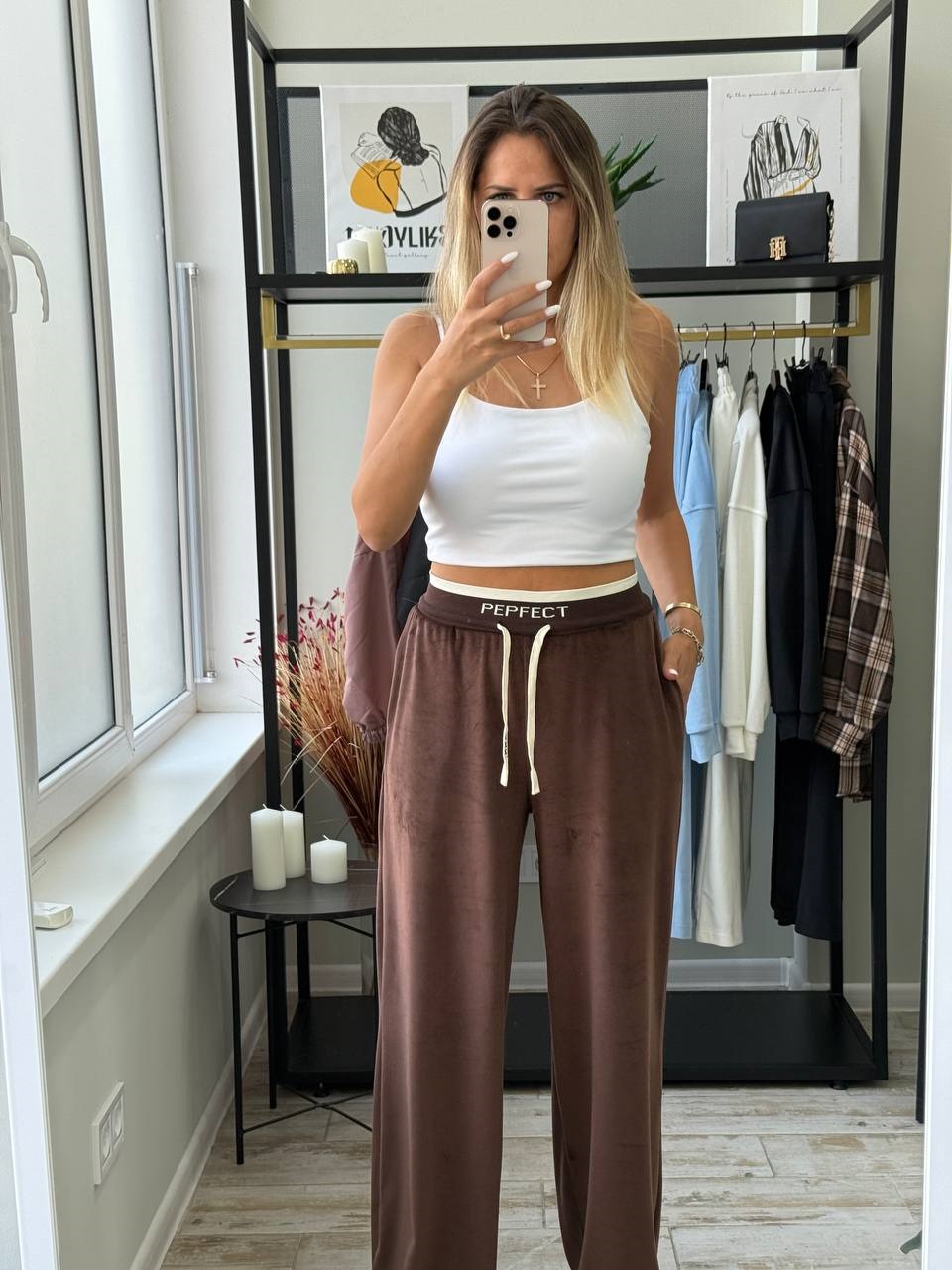 Головна » Магазин » Одяг » Жіночі штани джинси штани гетри » Спортивные брюки палаццо велюр шоколад