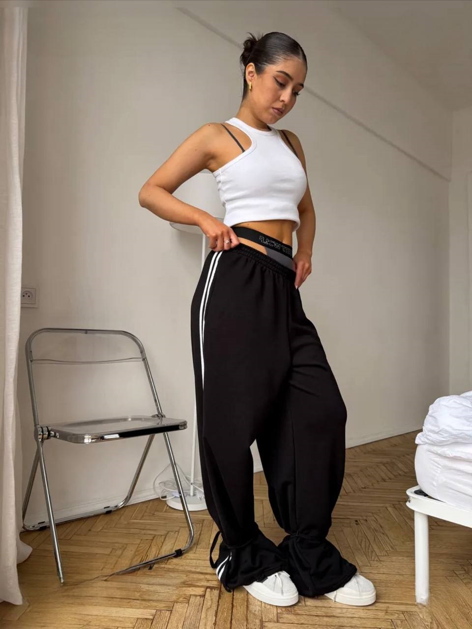 Головна » Магазин » Одяг » Жіночі штани джинси штани гетри » Спортивные брюки свободного кроя с лампасами черный